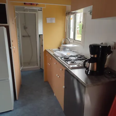 The property includes an outdoor dining area and a dining place with a refrigerator and kitchenware. D'Aix-les-Milles airport is located 95 km away from this campsite.